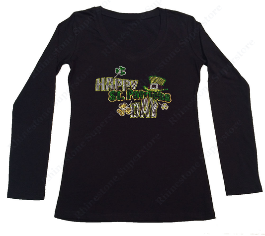 Womens T-shirt with Happy St. Patrick's Day in Rhinestones