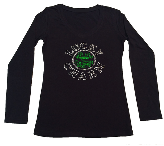 Womens T-shirt with Lucky Charm Clover St. Patrick's Day in Rhinestones