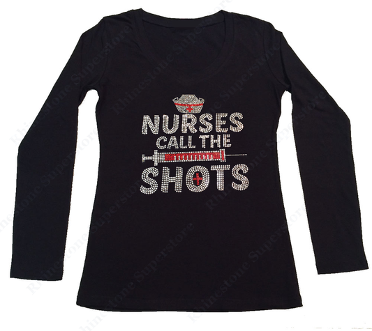 Womens T-shirt with Nurses Call The Shots in Rhinestones