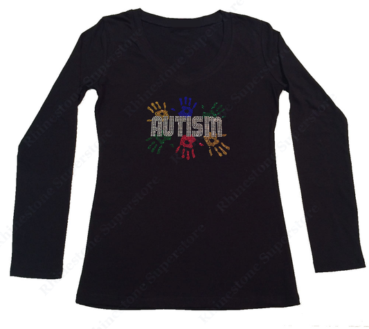 Womens T-shirt with Autism Awareness with Handprints in Rhinestones