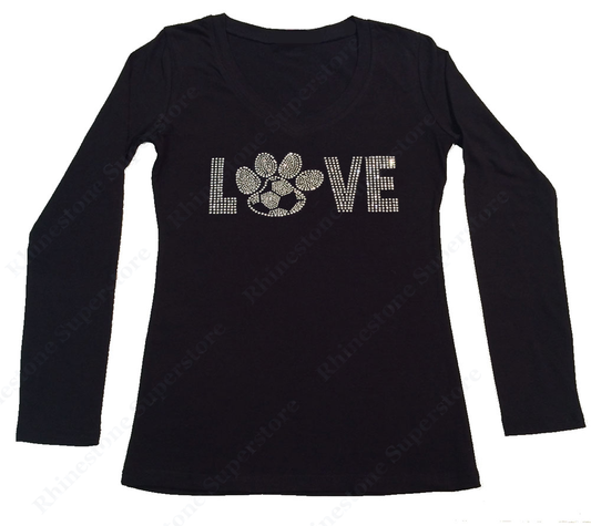 Womens T-shirt with Love Volleyball Paw in Rhinestones
