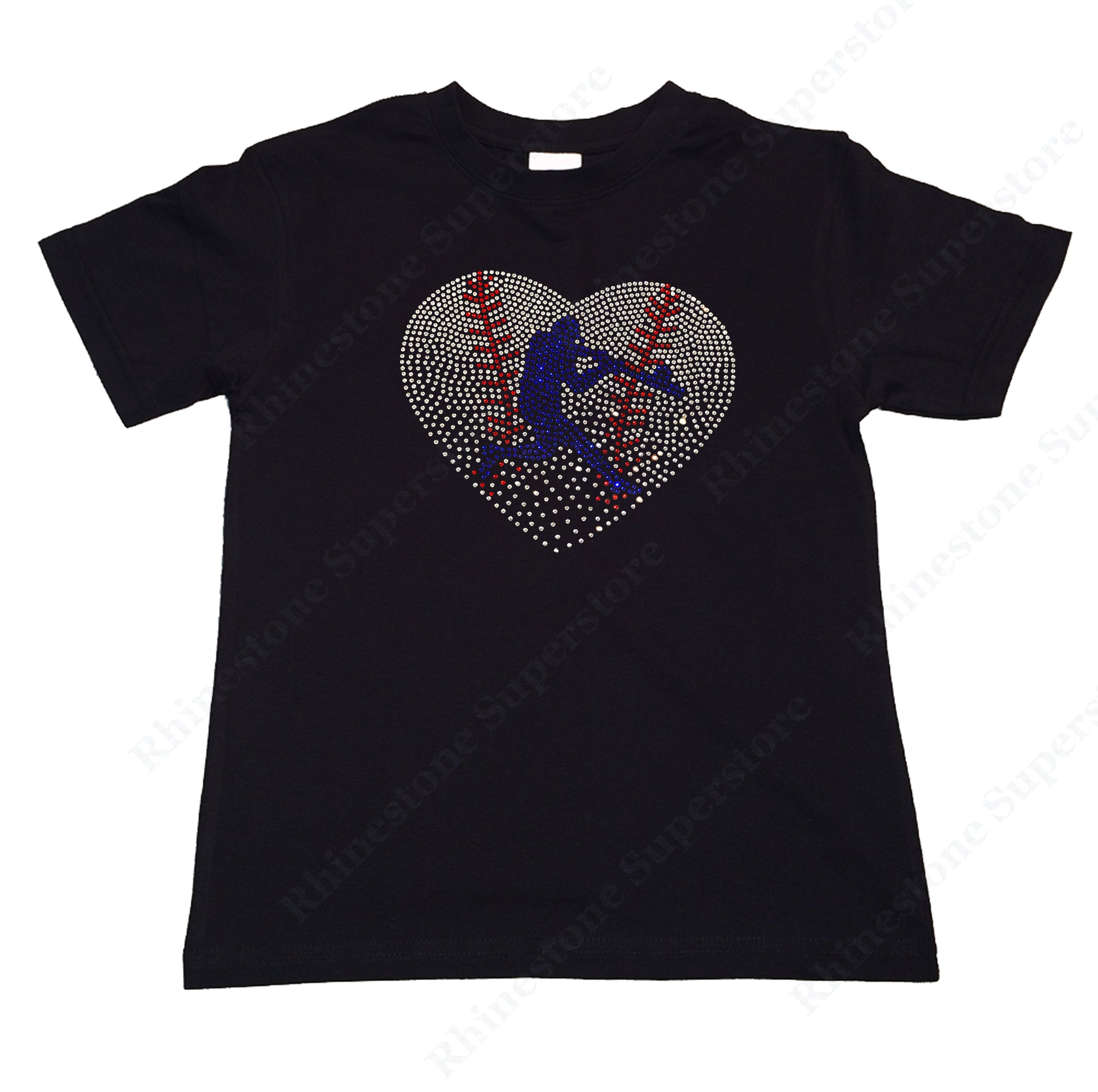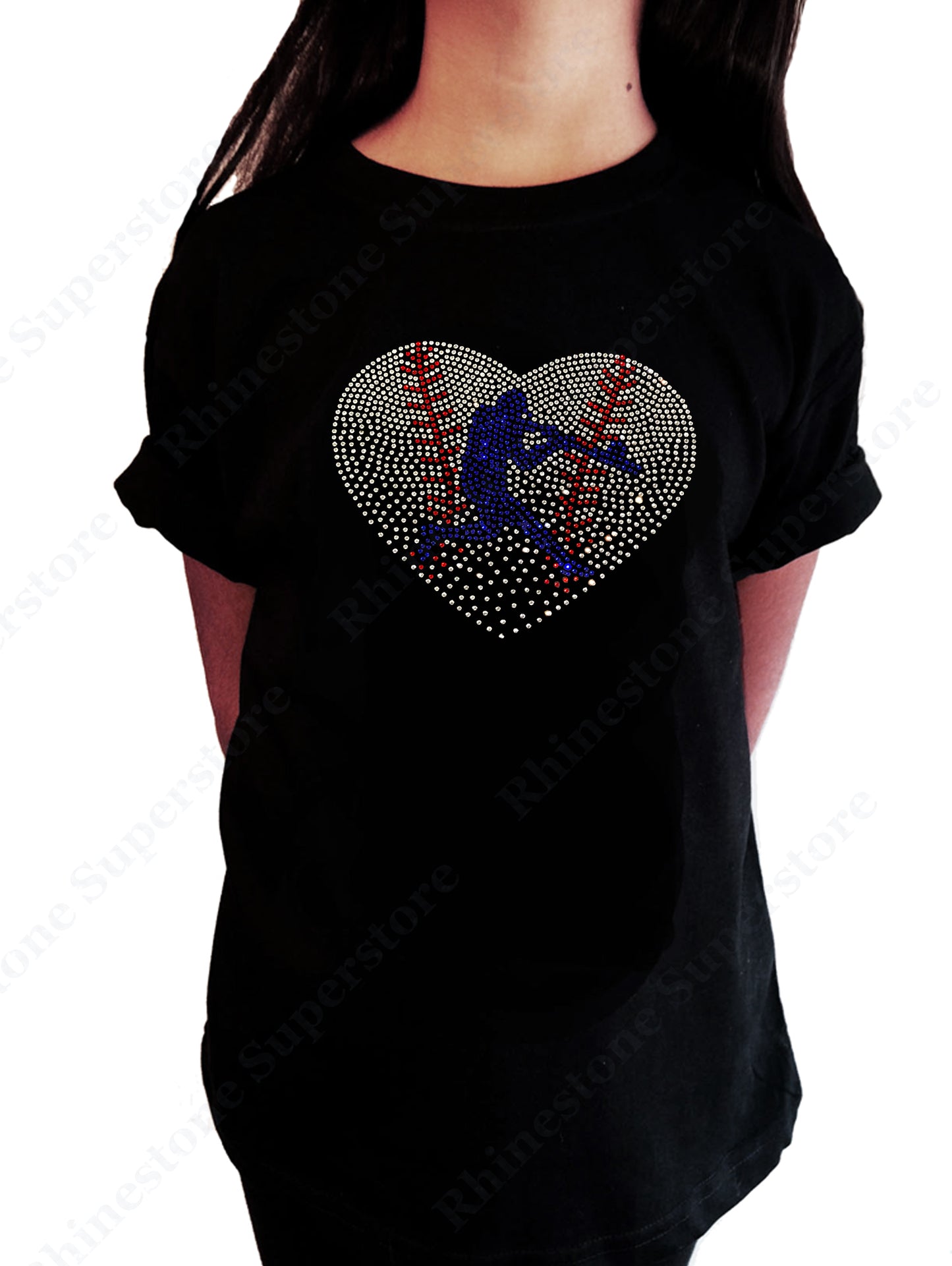 Girls Rhinestone T-Shirt " Baseball Heart with Batter in Rhinestones " Kids Size 3 to 14 Available
