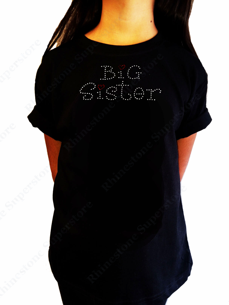 Girls Rhinestone T-Shirt " Big Sister with Red Heart " Kids Size 3 to 14 Available