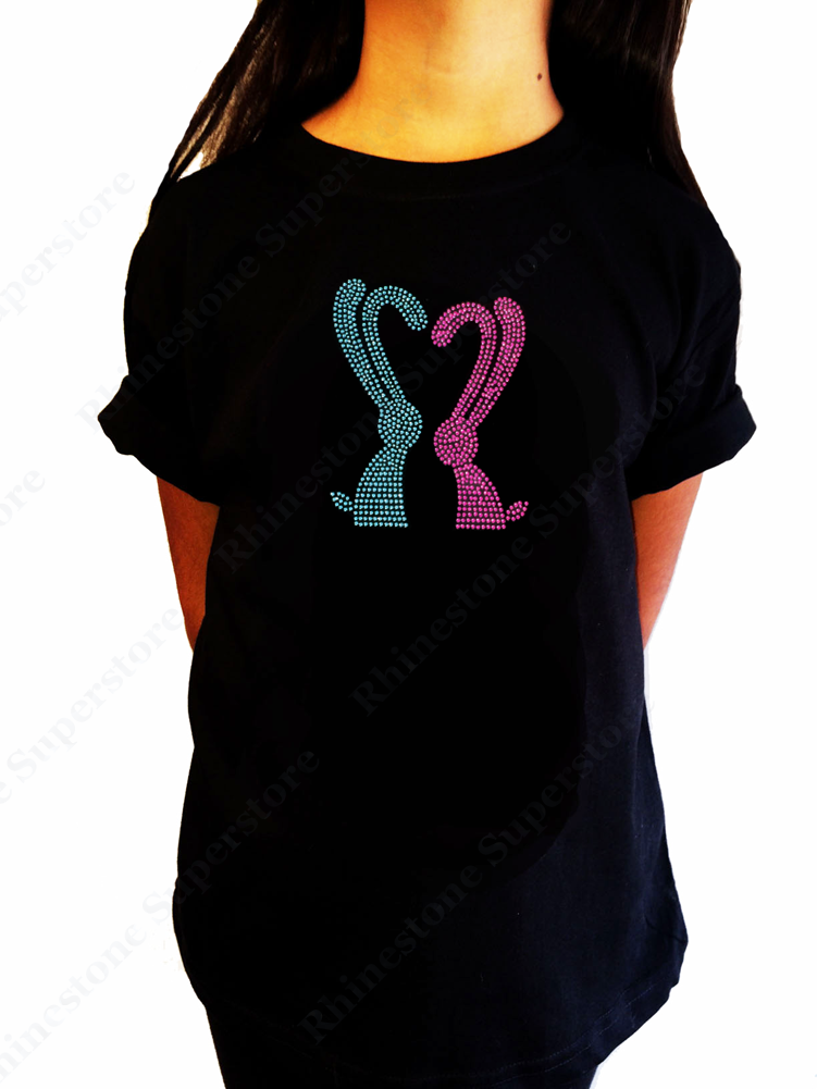 Girls Rhinestone T-Shirt " Bunnies in Heart Shape " Size 3 to 14 Available