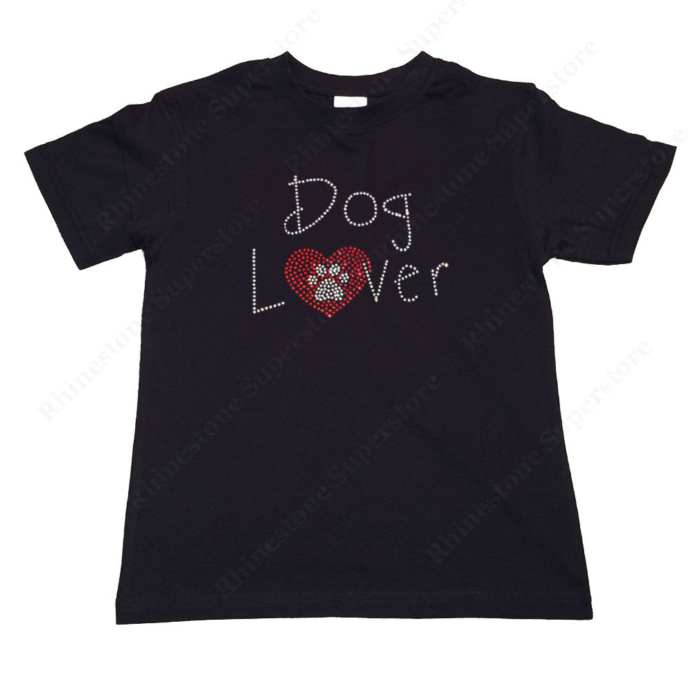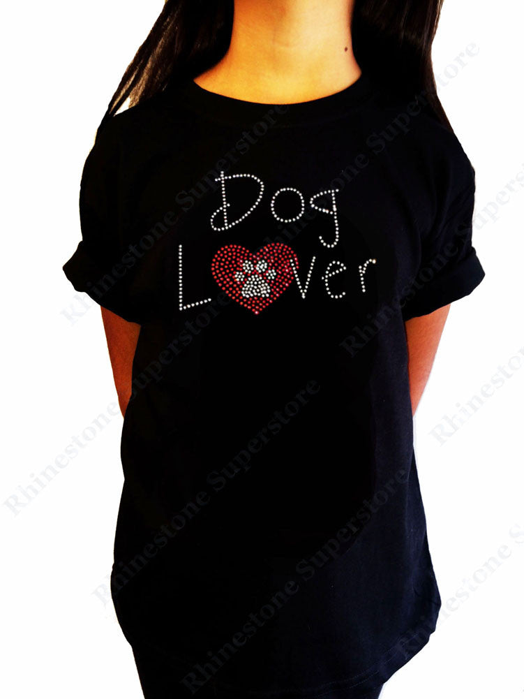 Girls Rhinestone T-Shirt " Dog Lover with Heart and Paw " Kids Size 3 to 14 Available