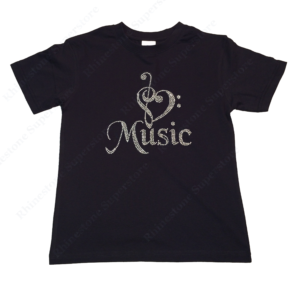 Girls Rhinestone T-Shirt " Heart Music Note " Size 3 to 14 Available