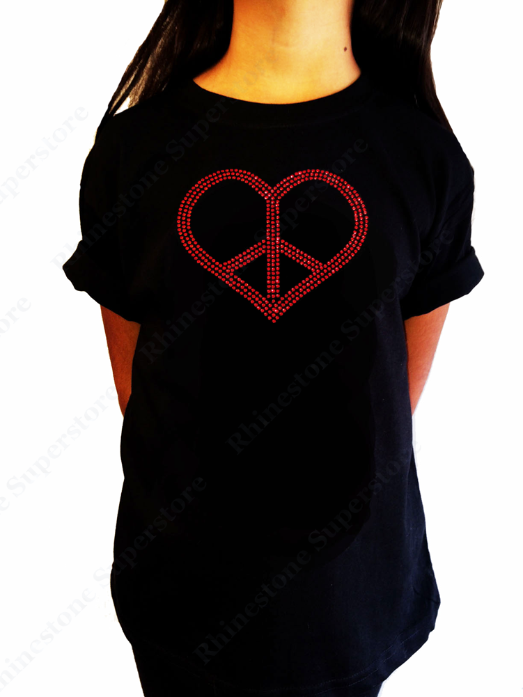 Girls Rhinestone T-Shirt " Red Peace Heart " Size 3 to 14 Available Peace Sign