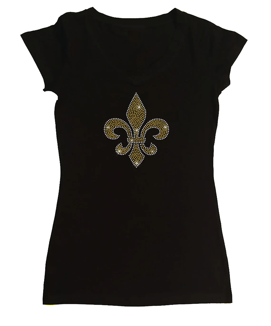 Women's Rhinestone Fitted Tight Snug Gold Fleur de Lis - Classic Design, Fleur de Lis Shirt