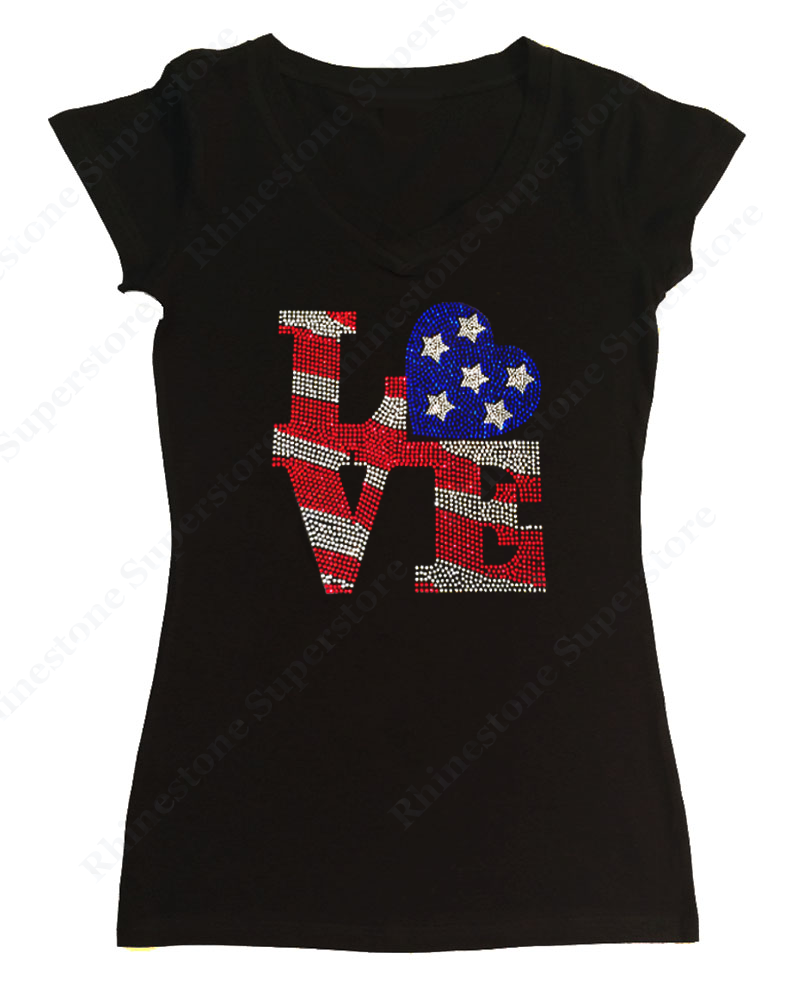 Womens T-shirt with Color Love 4th of July in Rhinestones