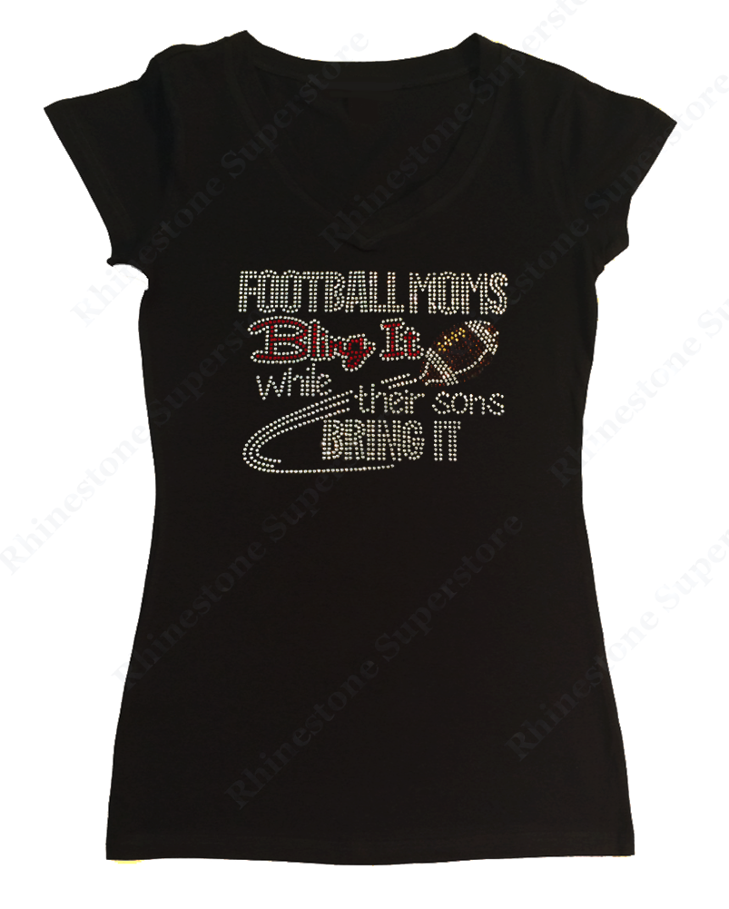 Womens T-shirt with Football Moms Bling it in Rhinestones