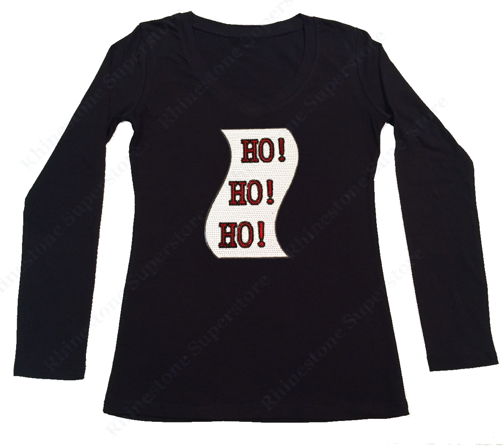 This is for New Women's Fitted T-Shirt embellished with “ Ho Ho Ho Christmas List " made in Sequence with a choice of V-Neck in Cap Sleeve or Long Sleeve Styles or Ribbed Razorback Tank Top.