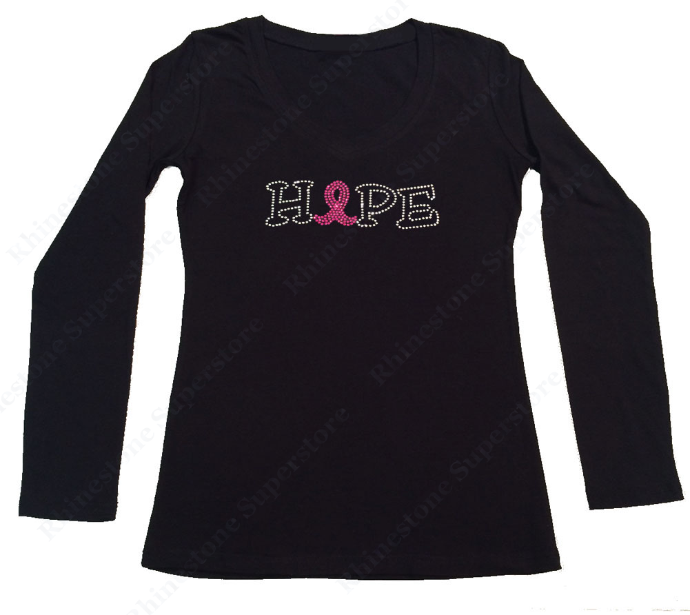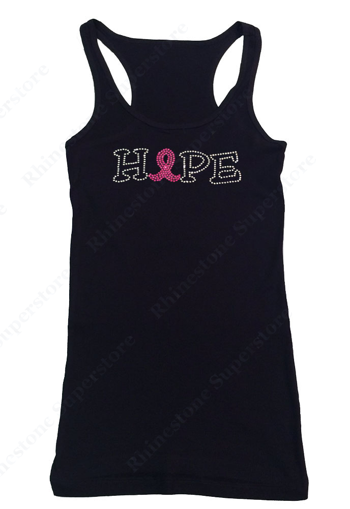 This is for New Women's Fitted T-Shirt embellished with “ Hope Cancer Ribbon " made in Rhinestones with a choice of V-Neck in Cap Sleeve or Long Sleeve Styles or Ribbed Razorback Tank Top.