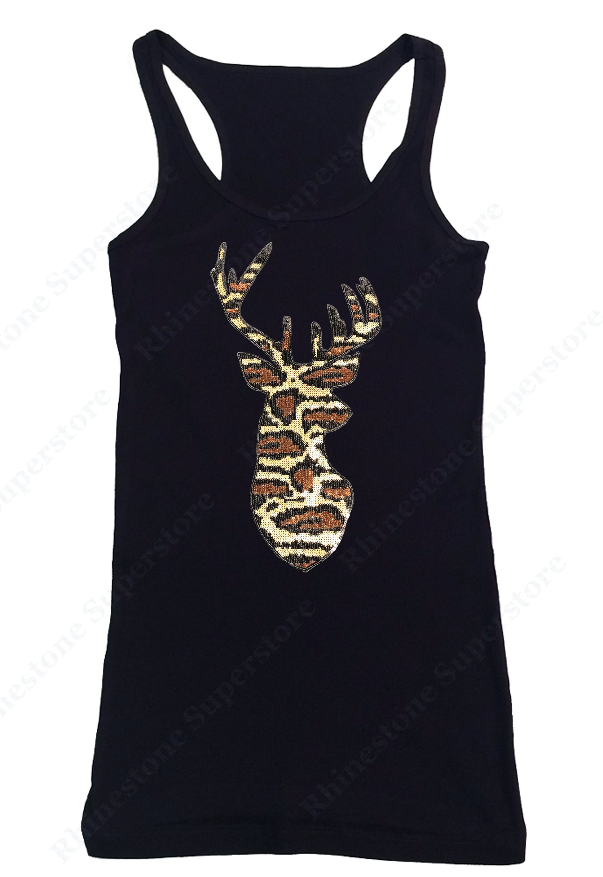 This is for New Women's Fitted T-Shirt embellished with “ Leopard Print Reindeer " made in Sequence with a choice of V-Neck in Cap Sleeve or Long Sleeve Styles or Ribbed Racerback Tank Top.