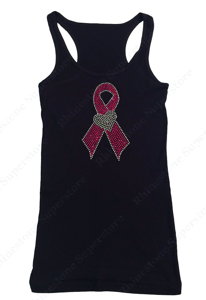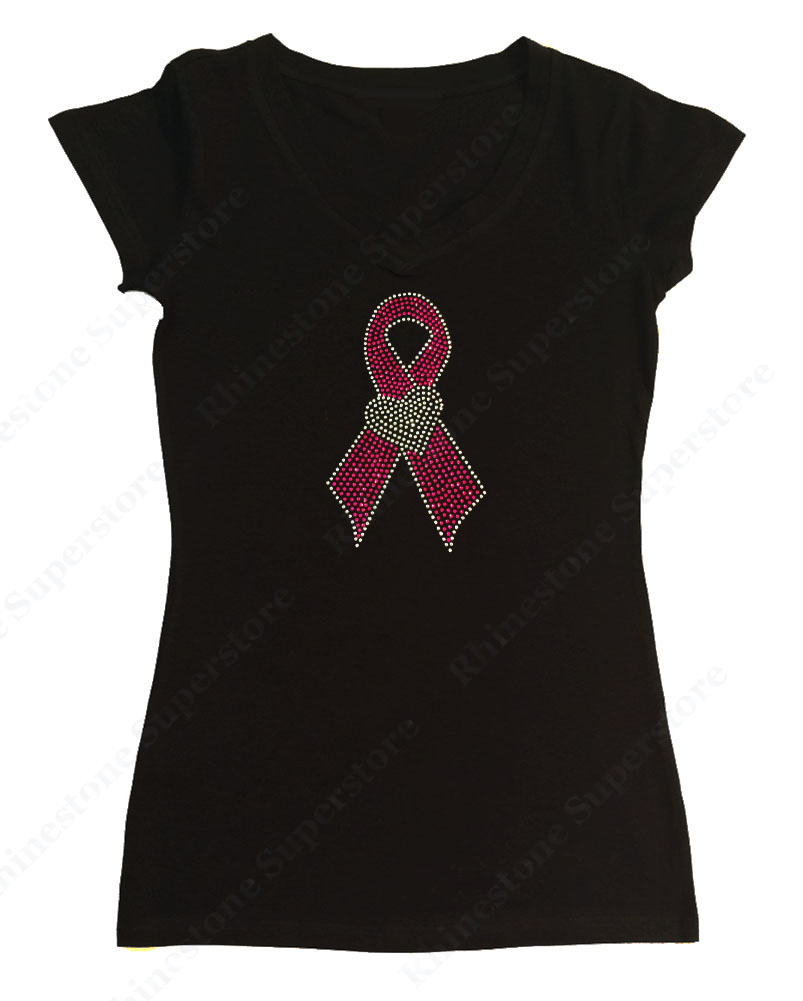 This is for New Women's Fitted T-Shirt embellished with “ Pink Cancer Ribbon with Crystal Heart " made in Rhinestones with a choice of V-Neck in Cap Sleeve or Long Sleeve Styles or Ribbed Razorback Tank Top.