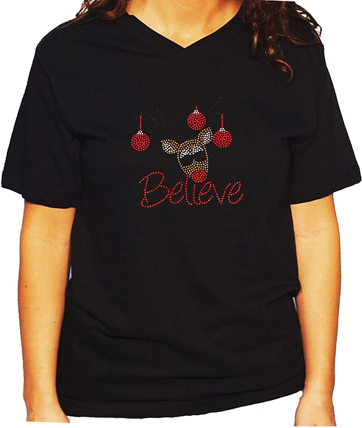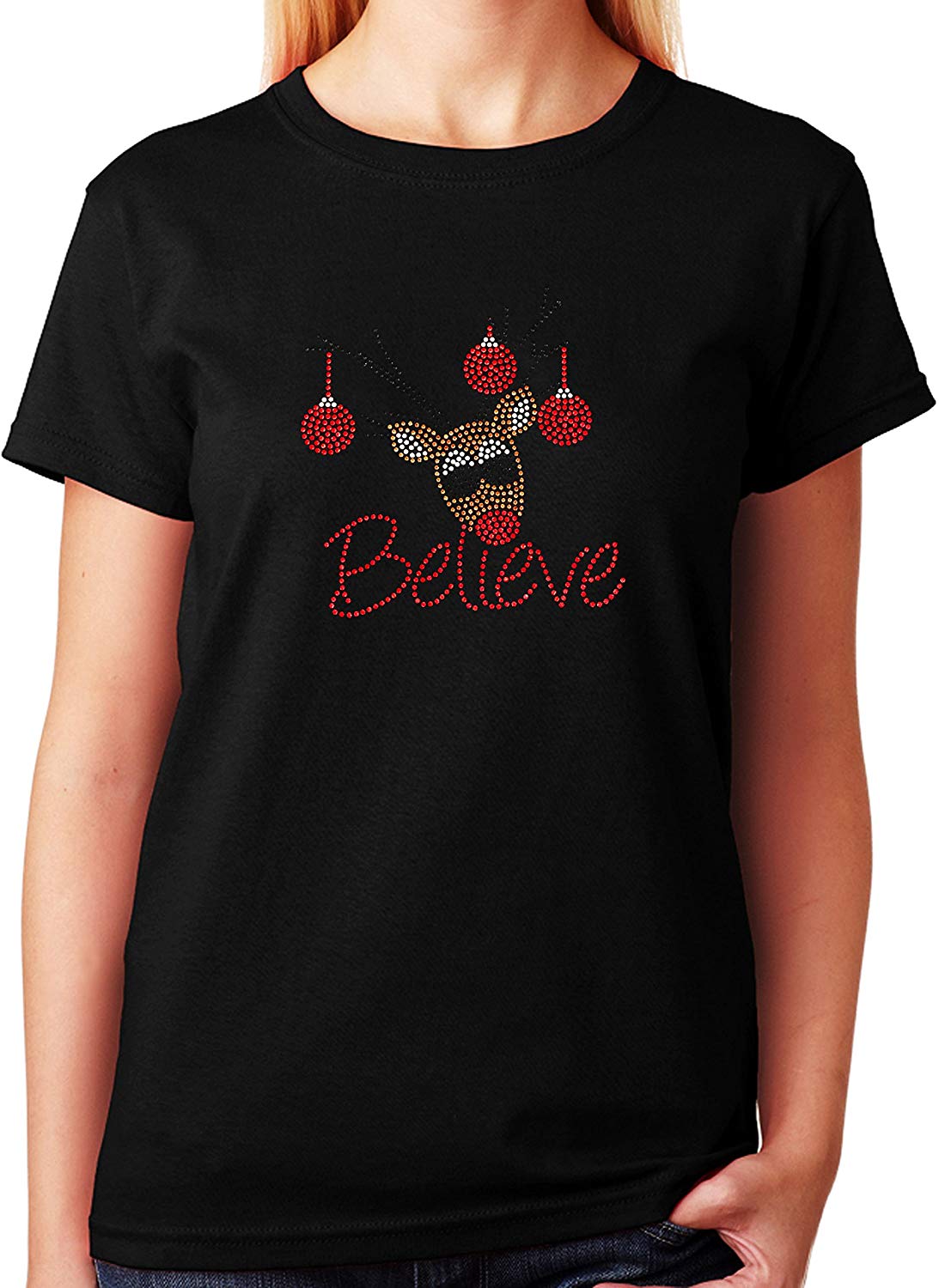 Women's / Unisex T-Shirt with Believe Reindeer In Rhinestuds
