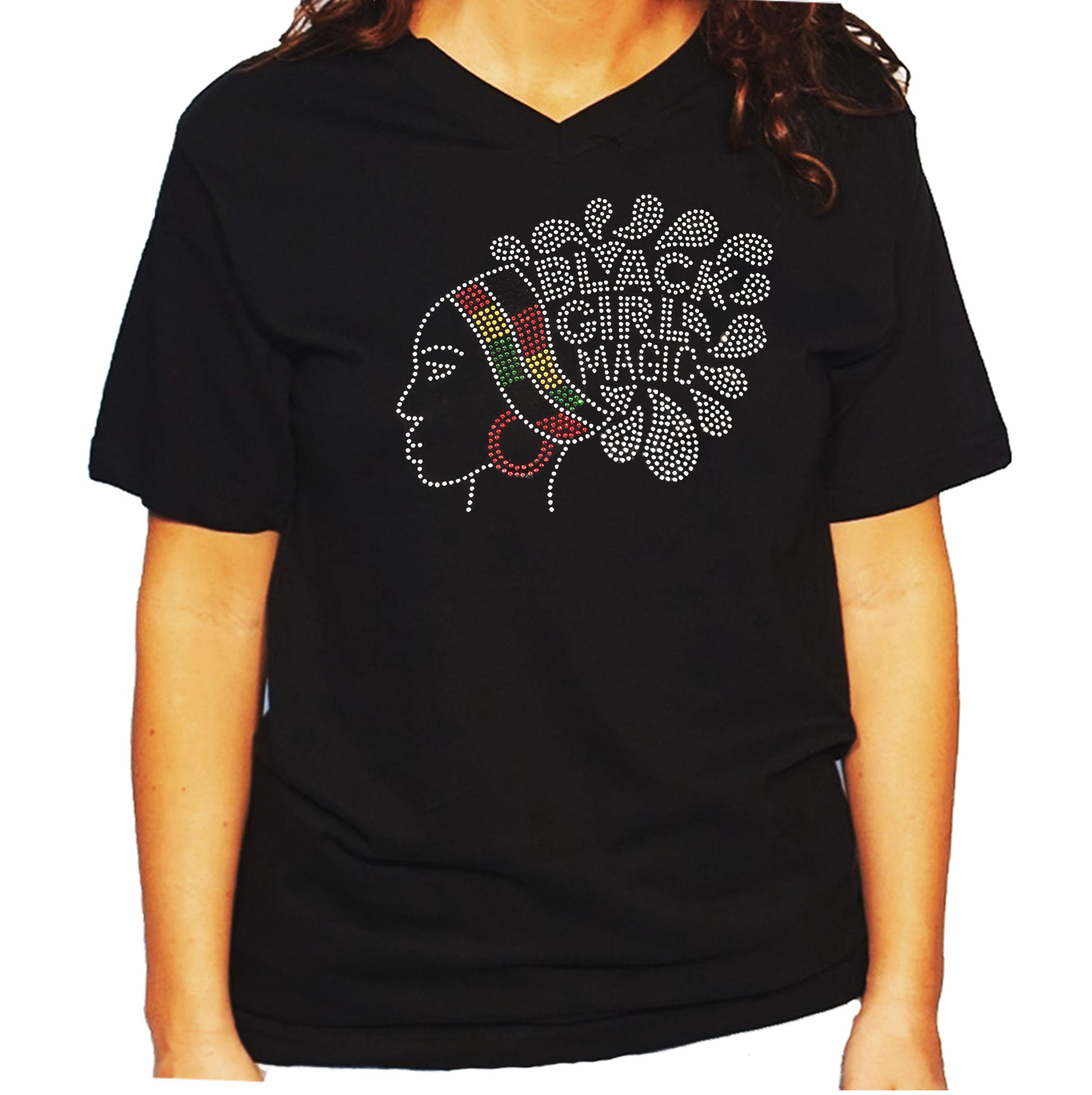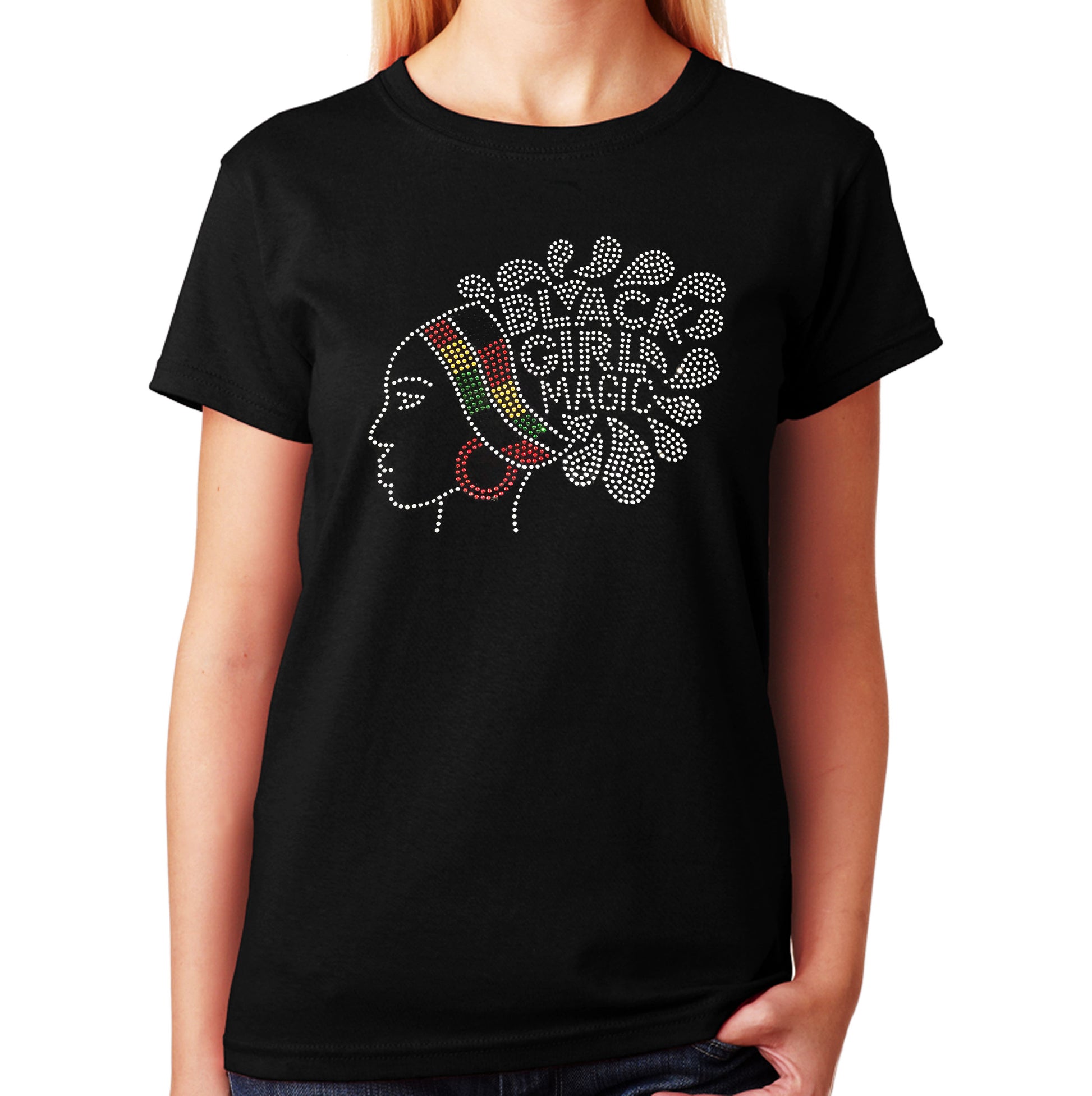 Women's / Unisex T-Shirt with Black Girl Magic in African Colors in Rhinestones