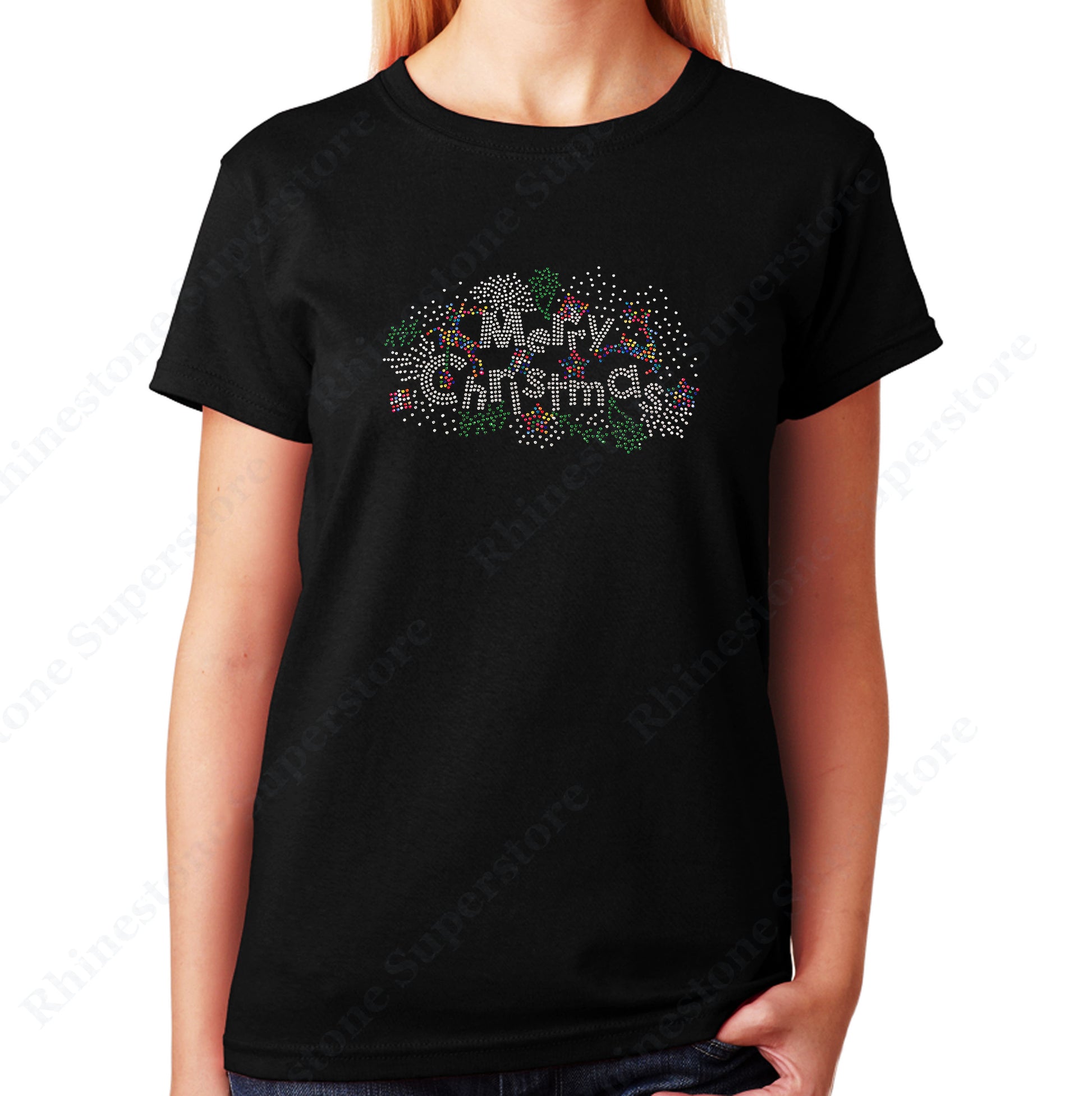 Women's / Unisex T-Shirt with Colorful Merry Christmas in Rhinestones