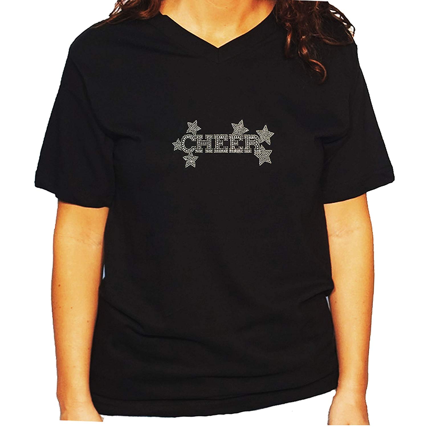 Women's / Unisex T-Shirt with Crystal Cheer Mom With Stars In Rhinestones
