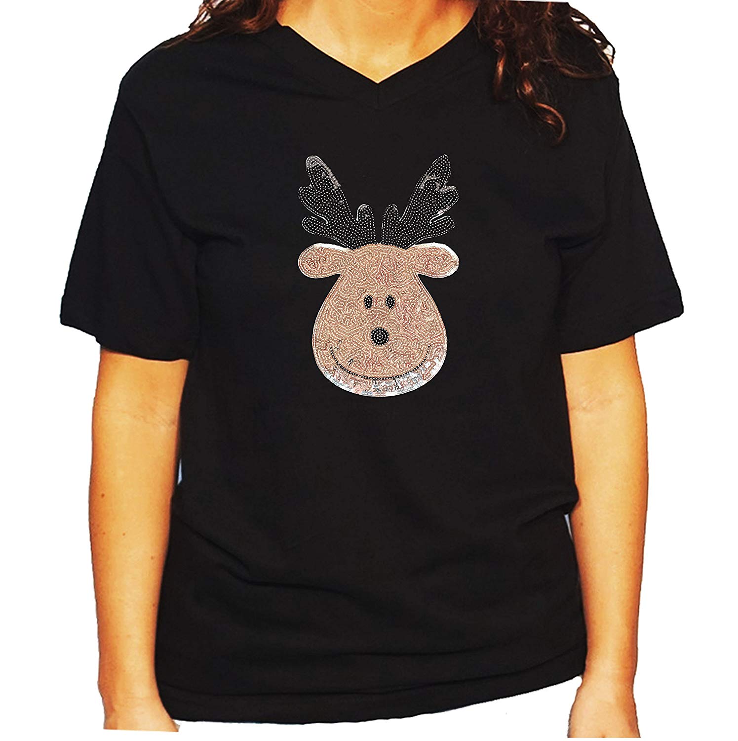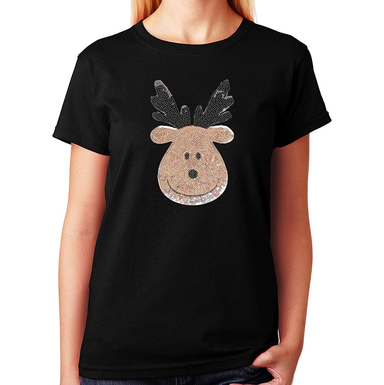 Women's / Unisex T-Shirt with Cute Silver Reindeer In Sequence