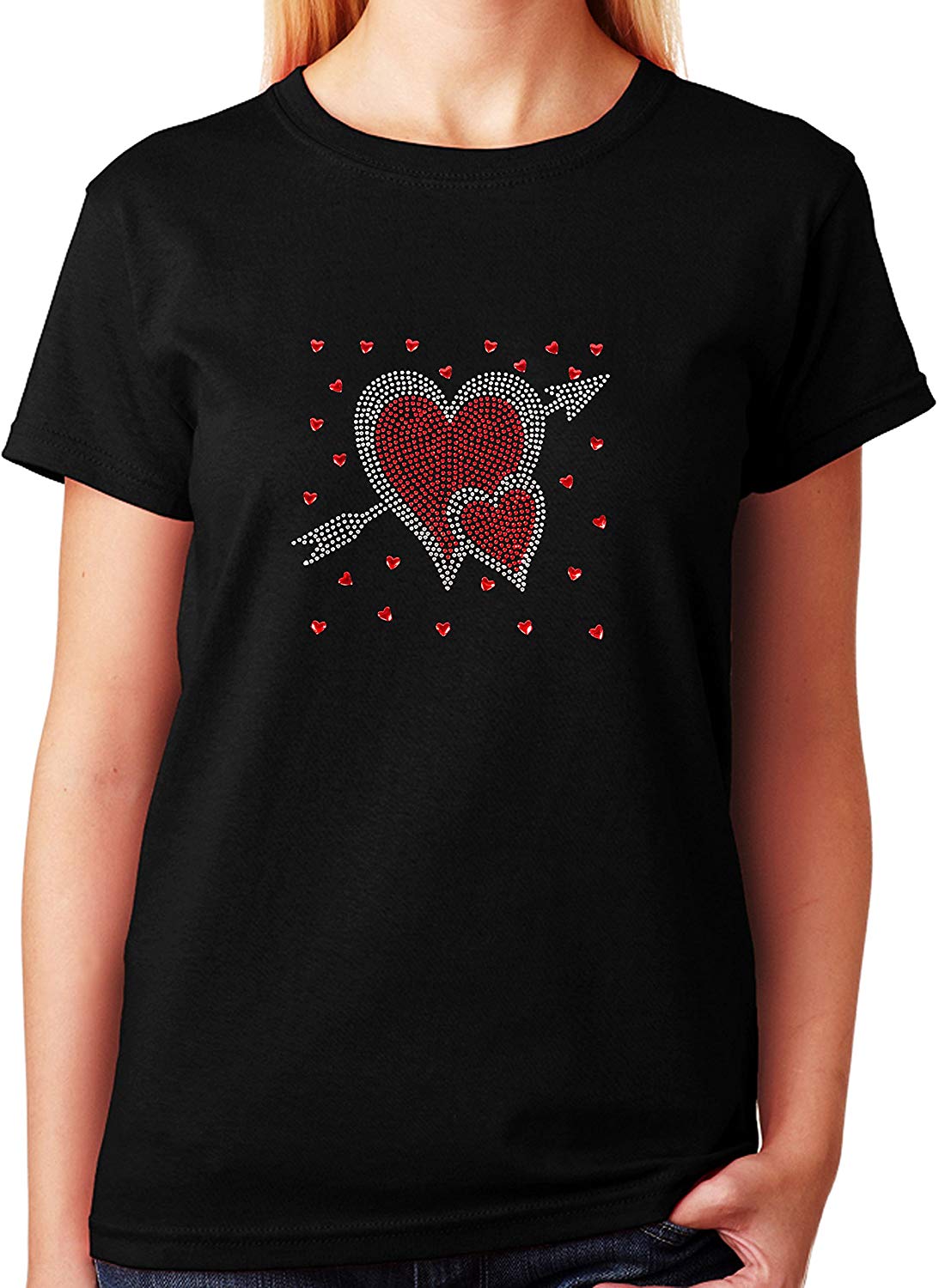 Women's / Unisex T-Shirt with Hearts With Arrow in Rhinestones
