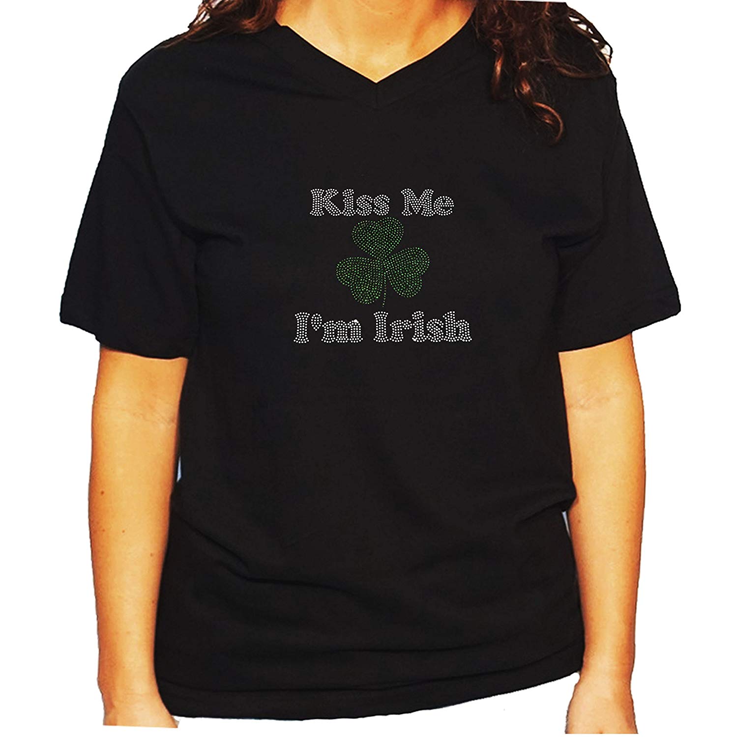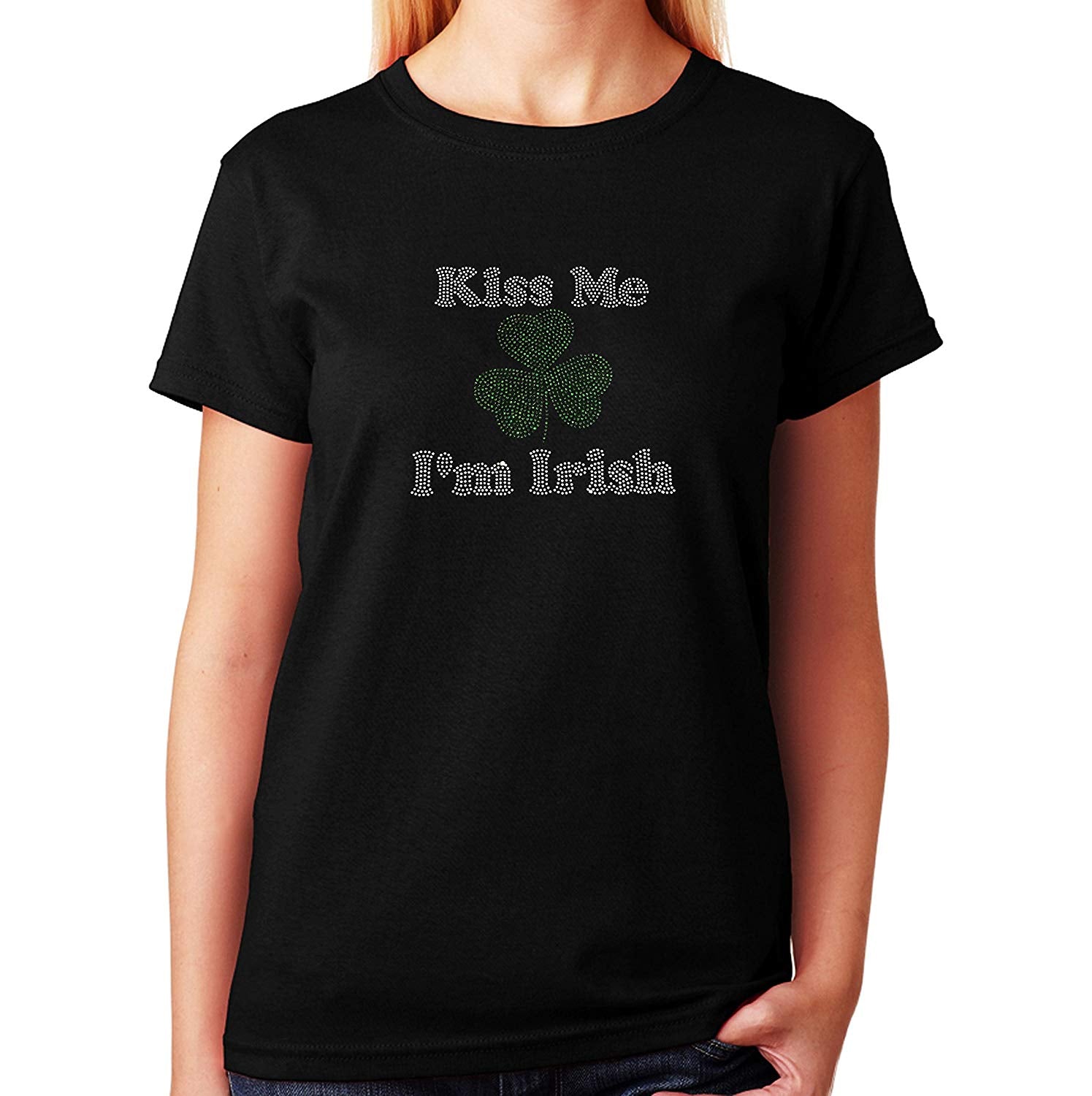 Women's / Unisex T-Shirt with Kiss Me I'm Irish in Rhinestones