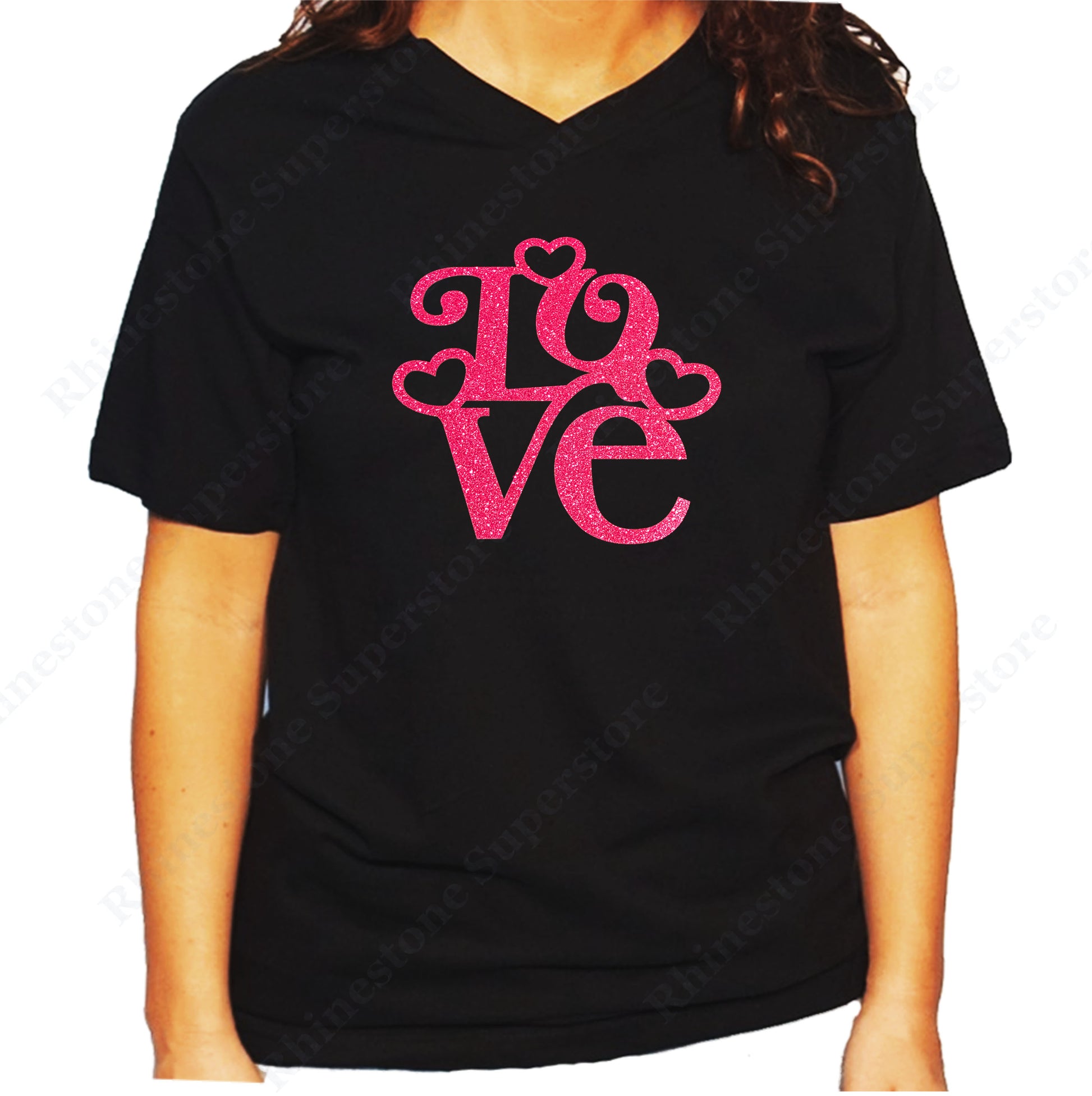 Women's / Unisex T-Shirt with Love with Hearts in Pink Glitters