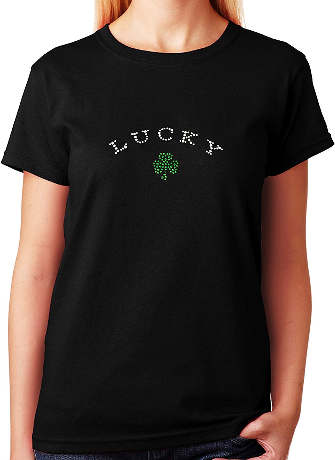 Women's / Unisex T-Shirt with Lucky 3 Leaf Clover In Rhinestones