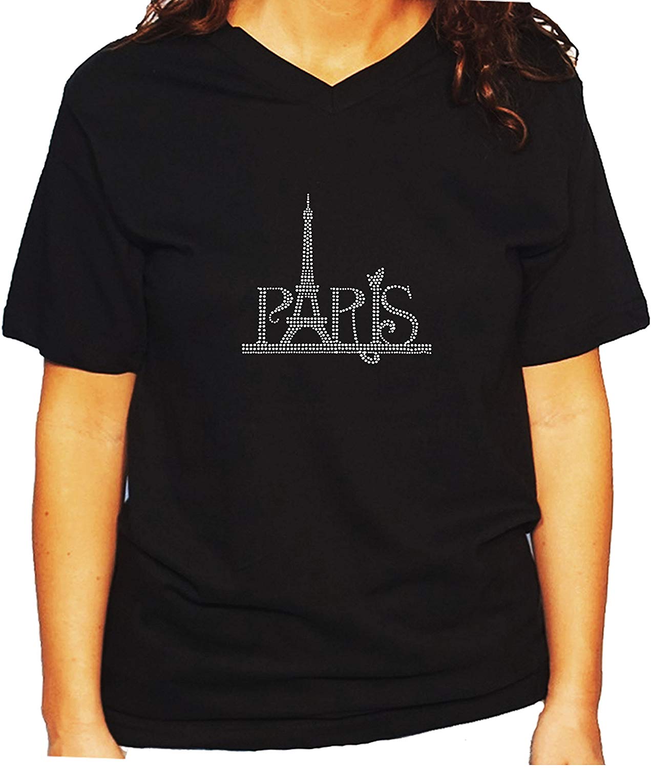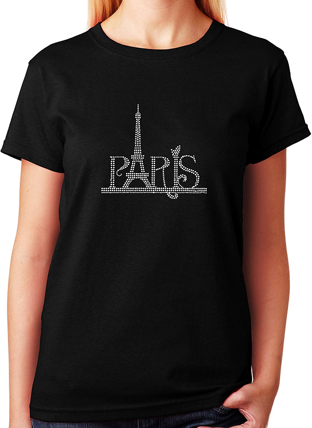 Women's / Unisex T-Shirt with Paris Eiffel Tower In Rhinestones