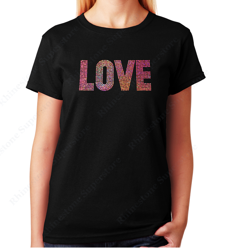 Women's / Unisex T-Shirt with Pink Love in Sequence