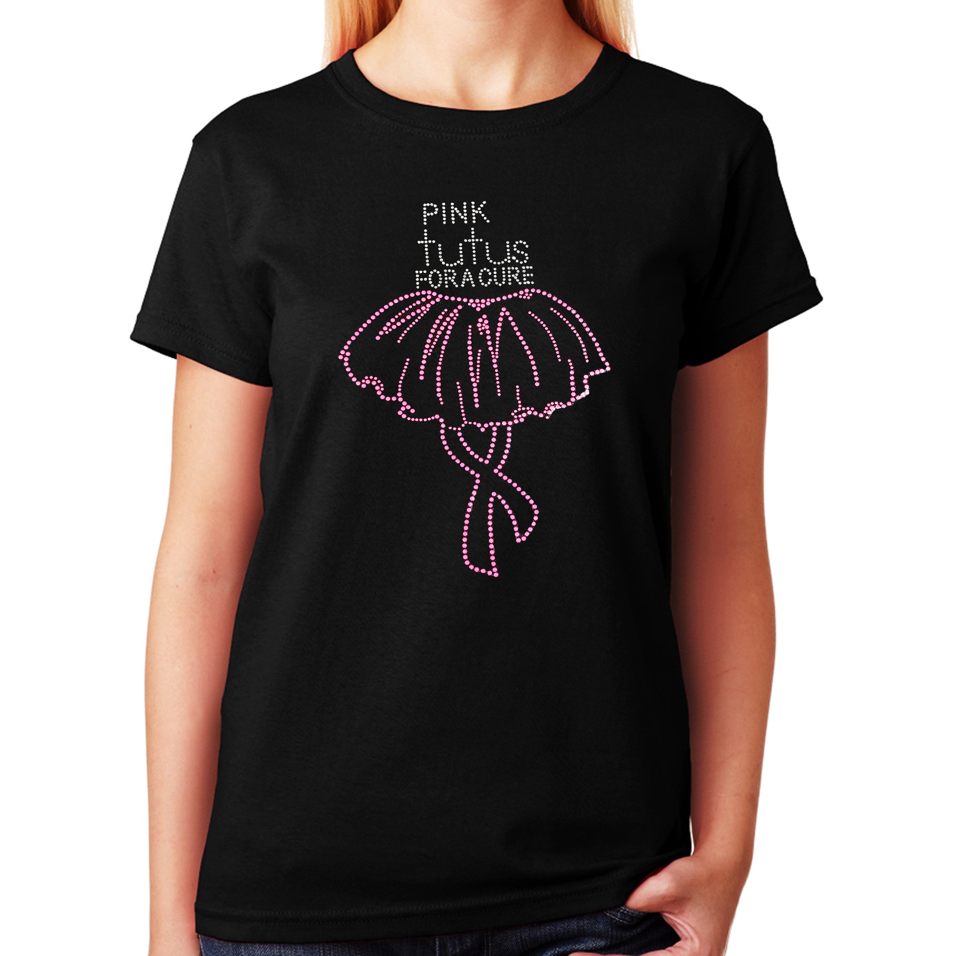 Women's / Unisex T-Shirt with Pink Tutus for a Cure Cancer Awarness in Rhinestones