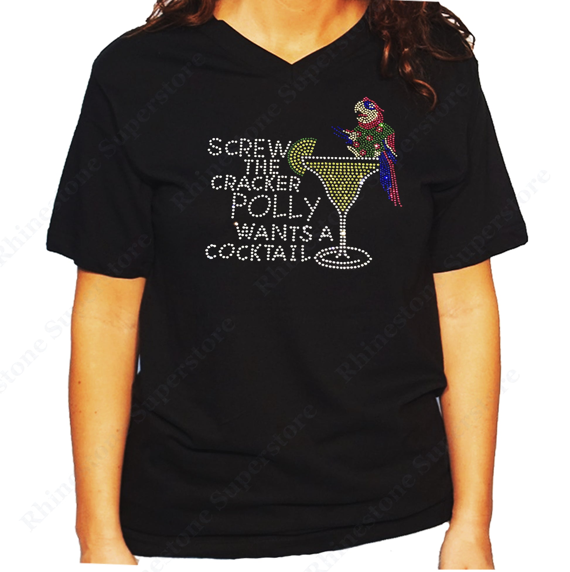 Women's / Unisex T-Shirt with Poly want a Cocktail in Rhinestones