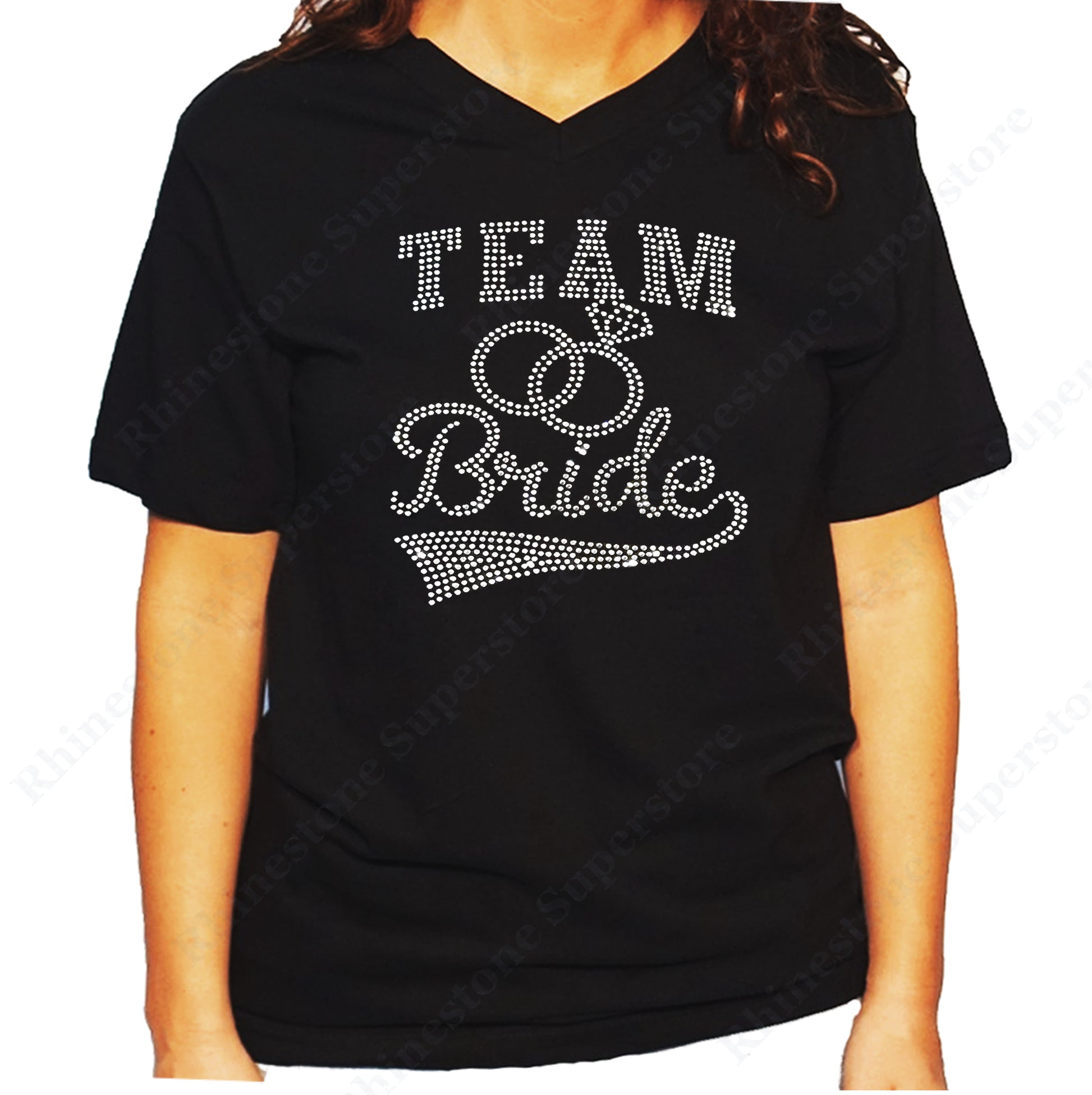 Women's / Unisex T-Shirt with Team Bride with Rings in Rhinestones