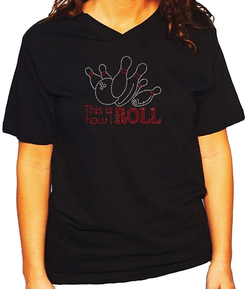Women's / Unisex T-Shirt with This is how we Roll Bowling in Rhinestones